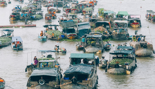 Après le petit-déjeuner, vous embarquez pour une croisière sur le marché flottant de Cai Rang, afin de vous immerger dans l’animation unique des bateaux chargés de fruits et de produits agricoles. Vous aurez l’occasion d’acheter directement depuis les embarcations, avant de poursuivre vers des vergers locaux et un atelier de fabrication de nouilles Hủ Tiếu, suivis d’un déjeuner typique du Sud du Vietnam dans un restaurant local.