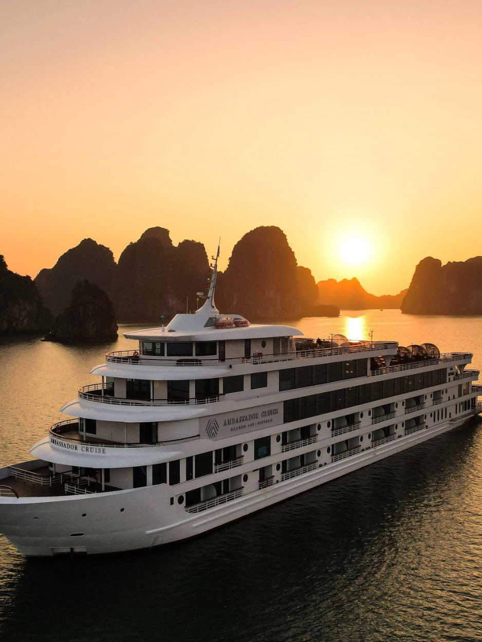 Jour 1: Immersion et Découverte. Accueil et embarquement, puis cap sur l'île Ti Tốp pour baignade ou vue panoramique. L'après-midi, place au kayak pour explorer les lagons cachés. La journée se termine par un dîner raffiné à bord.
