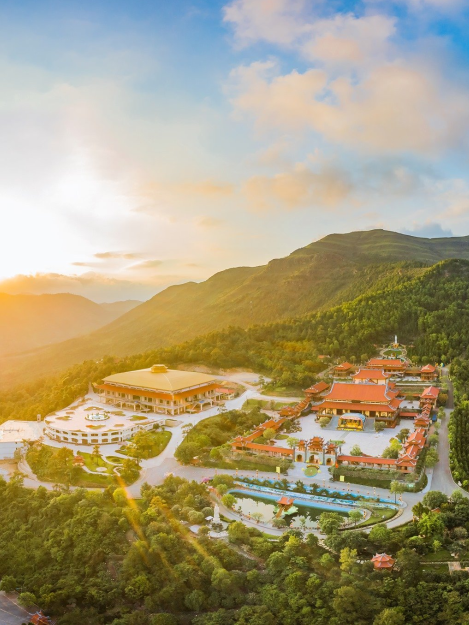 Un complexe de pagodes anciennes, dont une impressionnante statue du Bouddha Amitābha de 21,5 mètres de haut, le temple Bảo An et une grande cloche.