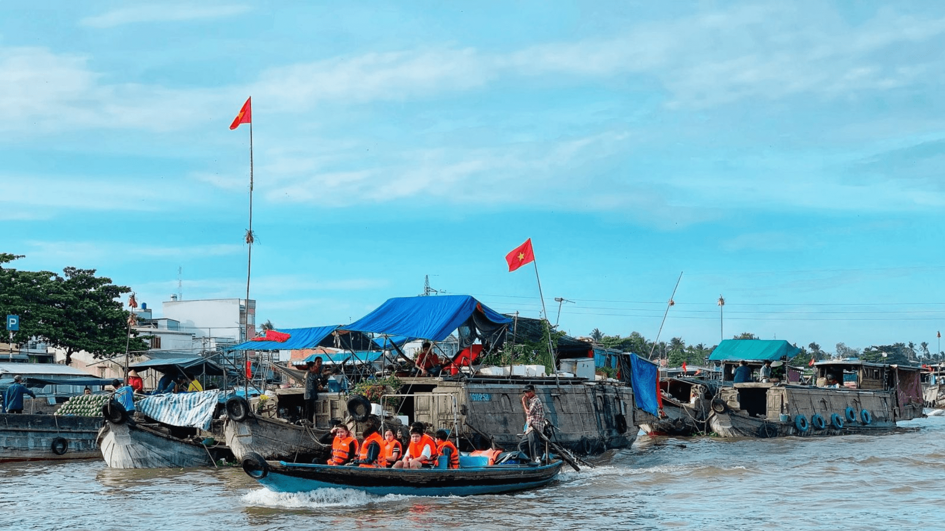 Après le petit-déjeuner, vous embarquez sur un bateau privé pour visiter le marché flottant de Cái Răng, l’un des plus animés du Delta du Mékong. Un spectacle authentique de bateaux débordant de fruits tropicaux et de produits locaux.